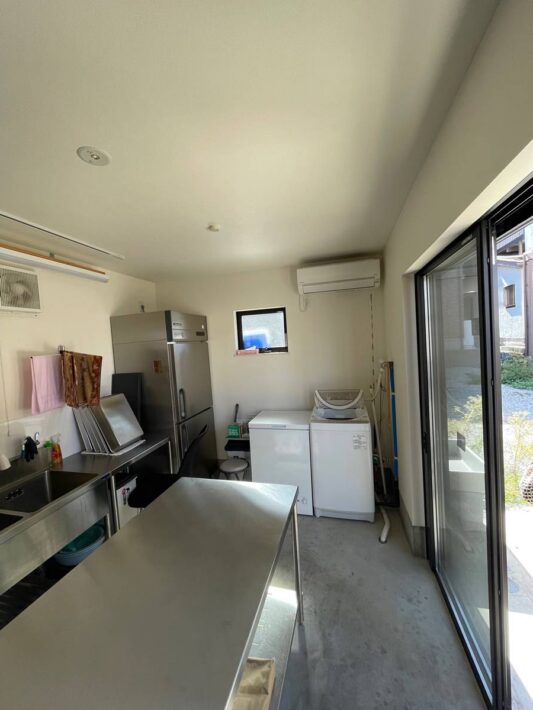 - 釣った魚を処理できる業務用キッチン付き建物。洗い場、調理台・冷蔵庫、洗濯機、製氷機・トイレ装備、どれも良好なコンディション。※海産物の加工販売のため建てられた建物です。